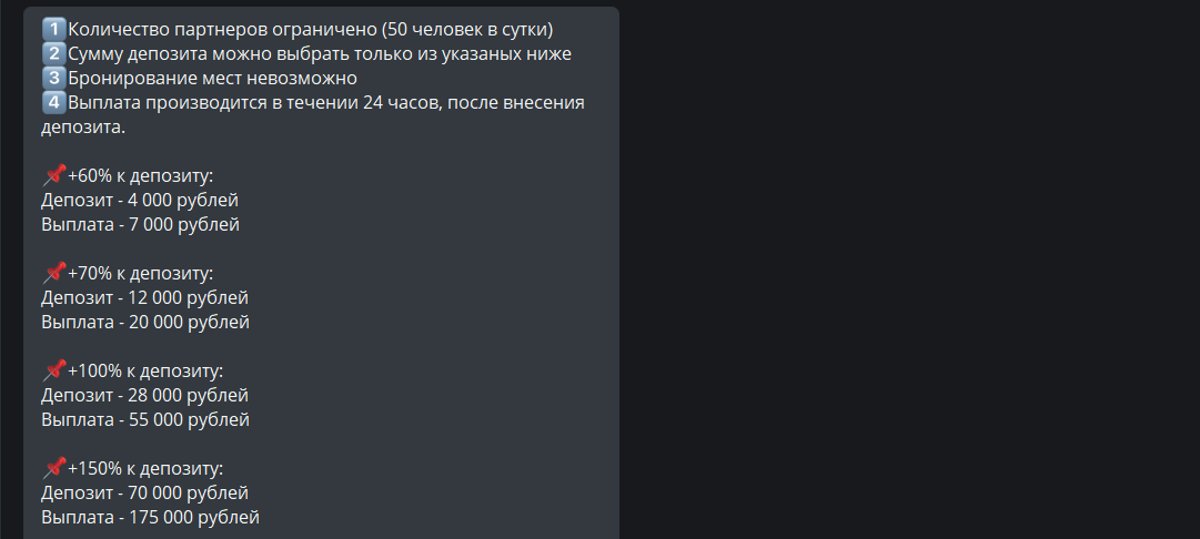 Депозит – 4 000 рублей – Выплата – 7 000 рублей