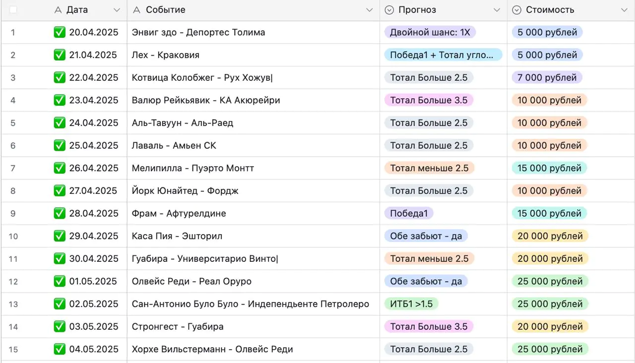 По просьбам читателей, спустя год добавляем актуальные результаты. Первые несколько матчей работали по КФ2, подготавливали аккаунты, дальше только полный матч: